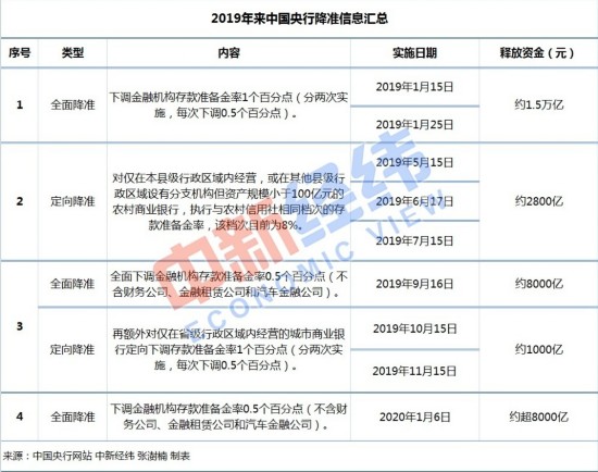 6日,中国央行2020年第一次降准落地,释放长期资金约8000多亿元。