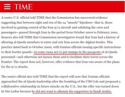 这也是为何那份美方的9•11报告最终会承认,没有证据证明伊朗和亲伊朗的真主党,预先知道9•11的袭击。