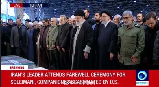 中国日报网微博1月6日消息,刚刚,苏莱马尼送别仪式在德黑兰举行,伊朗最高领导人哈梅内伊含泪祈祷,民众高呼反美口号。
