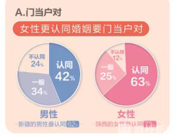 繁忙的工作以及社交圈子的狭小,反而促使“开门见山式”的相亲方式,更加迎合单身男女想要快速步入婚姻的需求。恋爱本身就是了解彼此的三观、兴趣、习惯是否契合,所以职场单身也有一定的顾虑。据“婚恋观报告”统计,职场男女关于门当户对的意识、成家立业的看法、家庭与事业的重心取舍、是否当全职妈妈等等,还存在主观上的差异。外部存在的各种客观因素,使得职场单身们对待开展一段爱情越发慎重,63%的职场女性更认同“门当户对”。
