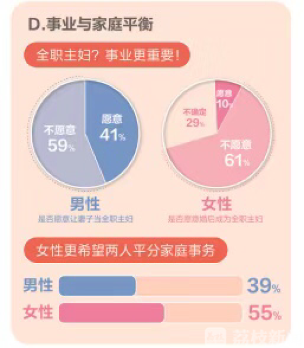 “婚恋观报告”显示,女性不接受“办公室恋情”的比例高达40%,但随着年龄的增长,比例却会不断下调;相对而言,男性则显得“佛系”很多,主要表现为不排斥的态度,且接受“办公室恋情”比例要高于女性,仅19%的男性表示“不接受”。同样用人单位对待此问题的态度也更加开朗,超过八成的受访男女均表示所属公司“不会限制办公室恋情”。在恋爱中,90%男性和94%女性会与对方讨论工作相关的事。