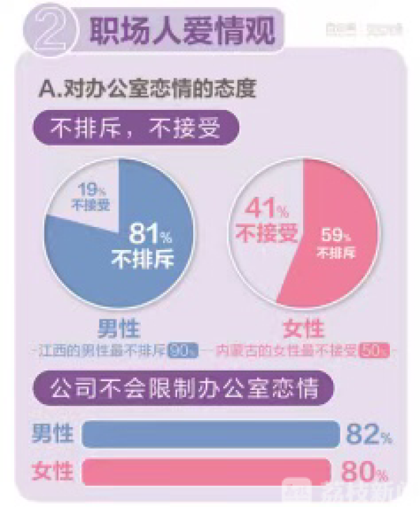 经济压力以及“不将就”的态度让职场单身人群变得更加谨慎,特别对于拥有诸多顾忌的恋爱方式,态度就显得比较明确,其中尤以敏感的“办公室恋情”为甚。
