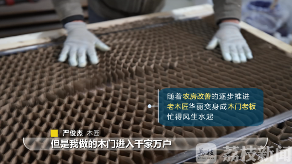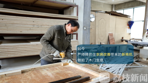 木匠严俊杰说:“原来我做木匠的时候,一天辛辛苦苦,只能挣到十多元钱,现在我改作木门生意,一年挣到十多万元,日子越过越好了。”