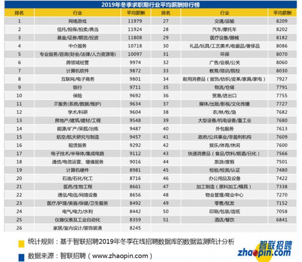 哪个行业最赚钱?报告数据显示,网络游戏行业以11979元的平均月薪再次位列第一;信托/担保/拍卖/典当行业的薪酬水平及排名较上一季度提升幅度最大,以11924元的平均月薪排名第二位。