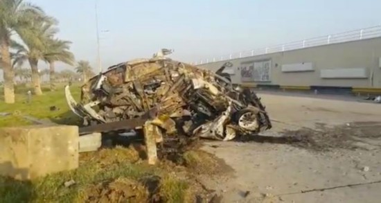 苏莱曼尼乘坐的飞机于巴格达时间凌晨12点32分降落。他们一行人乘坐一辆现代斯塔克斯面包车和一辆丰田亚洲龙轿车离开机场,两辆车相距100-120米远。凌晨1点45分,美军空袭了巴格达机场。初步调查显示,美军的无人机向这两辆车发射了三枚导弹。现代车首先被击中,丰田车躲过了第二枚导弹,试图加速逃走,但被第三枚导弹击中。
