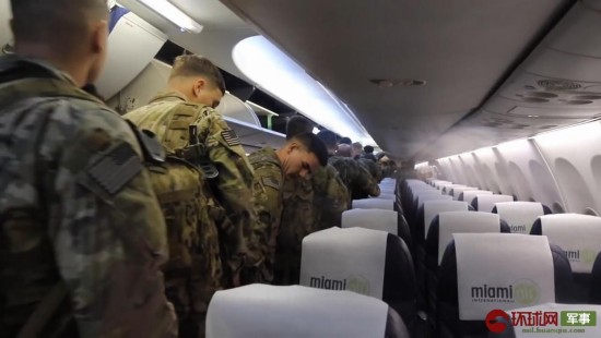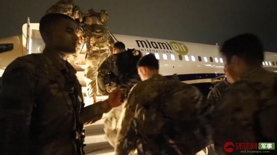 美军士兵登机后飞机起飞前往中东,但美国军方并未披露具体的目的地。