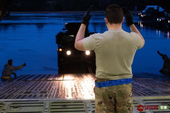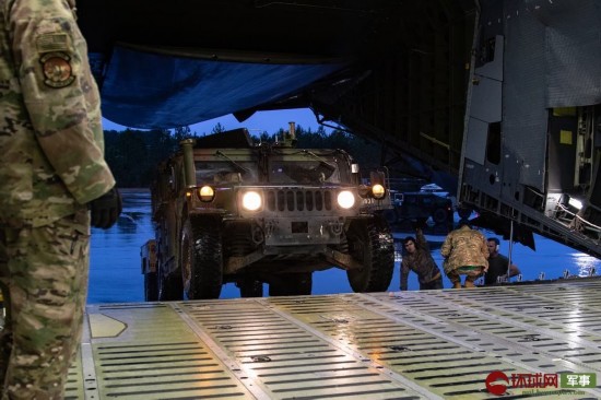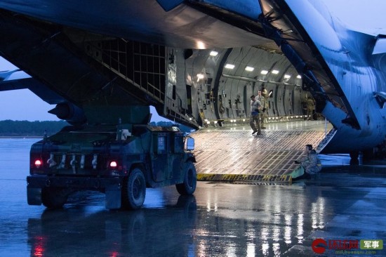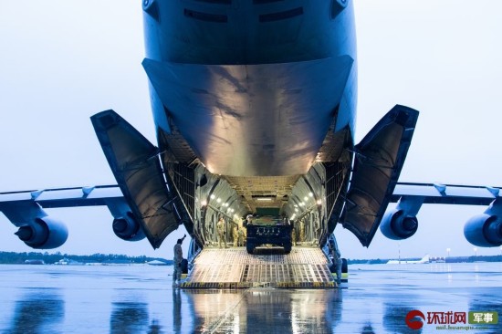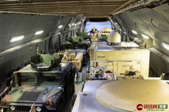 该部队的装甲车辆、重型武器及弹药等则通过C-17运输机运输。