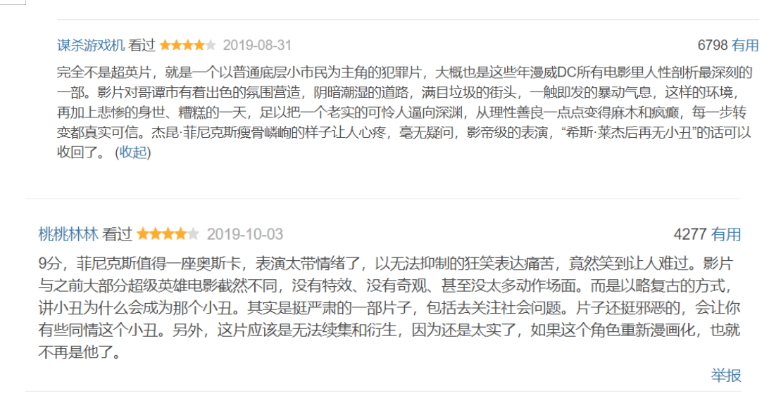 “DC宇宙的张力爆发”加上菲尼克斯的影帝级表演,使《小丑》在《黑暗骑士》之后,成为了DC漫改电影历史上一座新的里程碑。