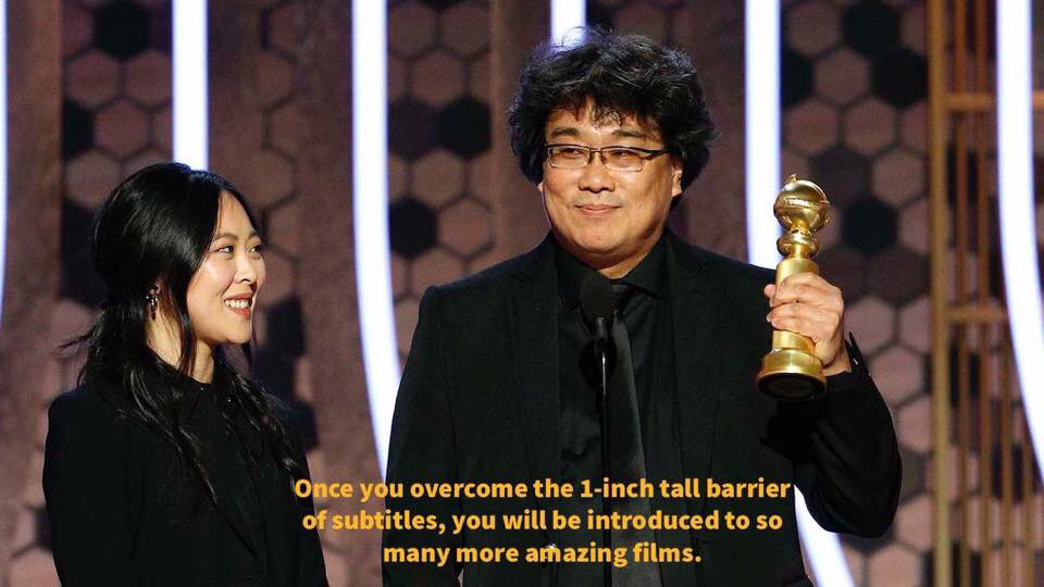 “只要克服了那一寸高的障碍——字幕,你就能看到很多更令人惊叹的电影。”导演奉俊昊在感言中不失幽默地鼓励大家去看更多的外语片。