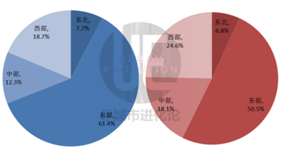 *注:左图为各地区运营里程在全国的占比;右图为2019年各地区新增里程的全国占比。