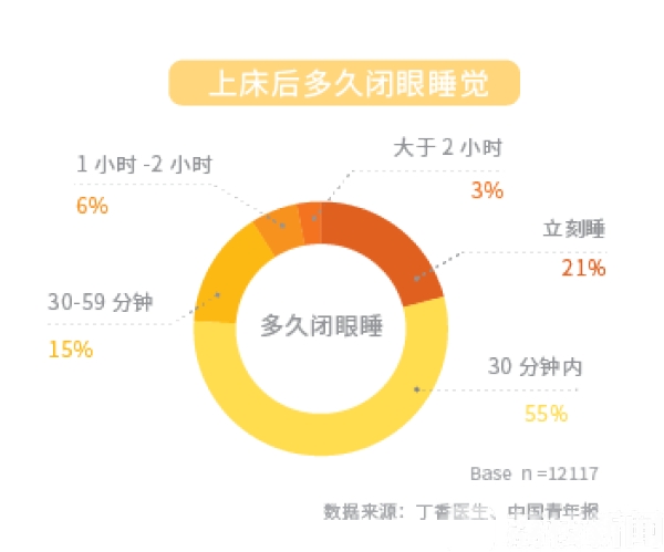 丰富的社交生活和各种电子产品或许是他们早睡的最大障碍。在大学生眼里,上床从来不等于睡觉,大学生们会利用这段时间进行丰富的娱乐活动,看剧、聊天、刷社交应用,一旦玩起手机,再想睡觉可能已是两小时之后。68% 的大学生在23点到24点之间入睡,有18%的大学生在24点以后入睡。