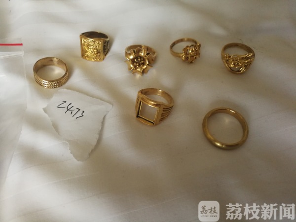 接到报案后,小市派出所民警立即对案发地周边监控进行调取。经过工作,迅速明确了嫌疑人的身份,发现嫌疑人已离开南京,办案民警连夜赶赴扬州,于当日晚11时在某酒店将嫌疑人夏某等抓获,现场缴获假黄金首饰近九十件。
