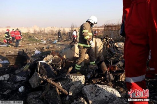 据伊朗半官方媒体塔斯尼姆(Tasnim)通讯社报道,一架载有近180人的乌克兰客机,在伊朗目霍梅尼国际机场附近坠毁。图为搜救人员在现场救援。