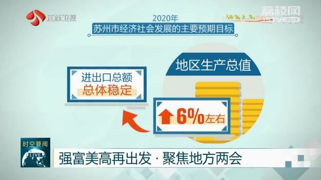 2020年,苏州市经济社会发展的主要预期目标是:地区生产总值增长6%左右,进出口总额总体稳定,居民人均可支配收入增速高于地区生产总值增幅。