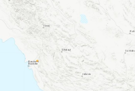 伊朗西南部发生4.9级地震。(图片来源:美国地质勘探局)