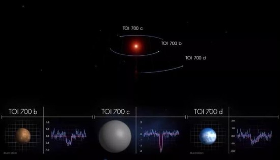TOI 700d环绕着一颗被命名为TOI 700的红矮星公转,公转周期是37天。地球的公转周期是一年。