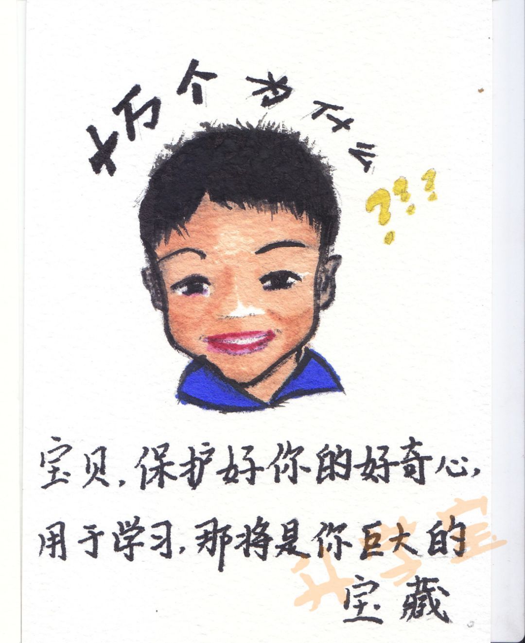 于是,洪老师把小宇的标志性笑容画下来,并在下面留言——“宝贝,保护好你的好奇心,用于学习,那将是你巨大的宝藏。”