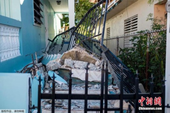 据美国地质调查局地震信息网消息,自2019年12月底起,波多黎各南部及附近海域发生了超过360次里氏2级以上的地震,其中7次为4级以上。图为地震中受损的房屋。
