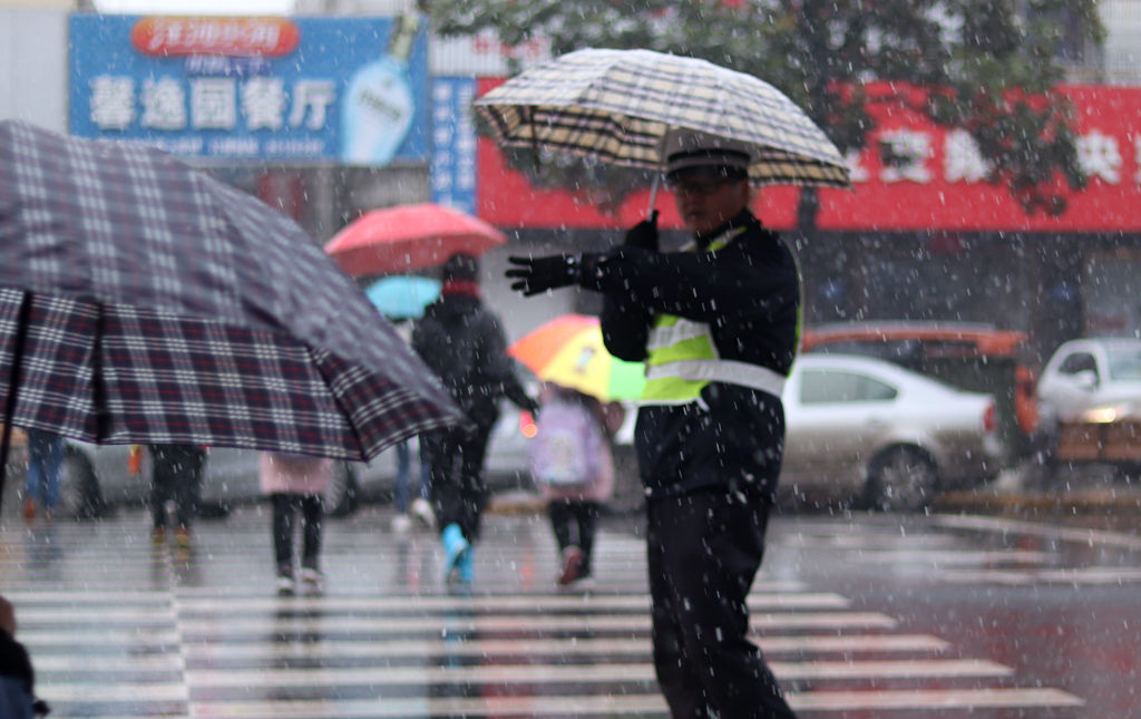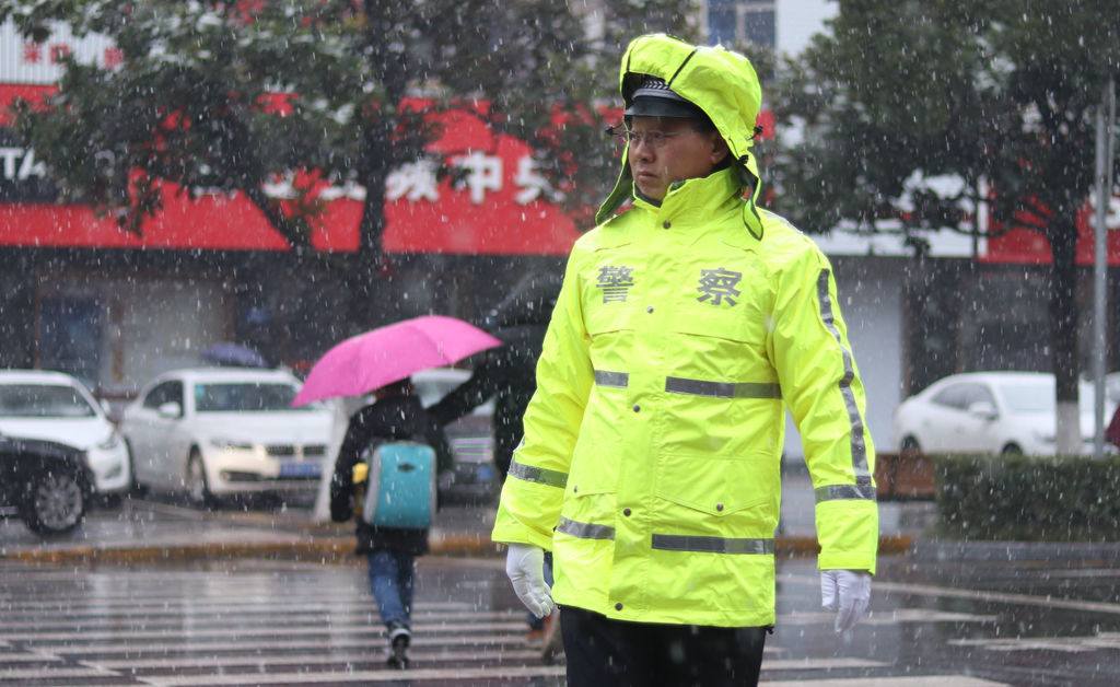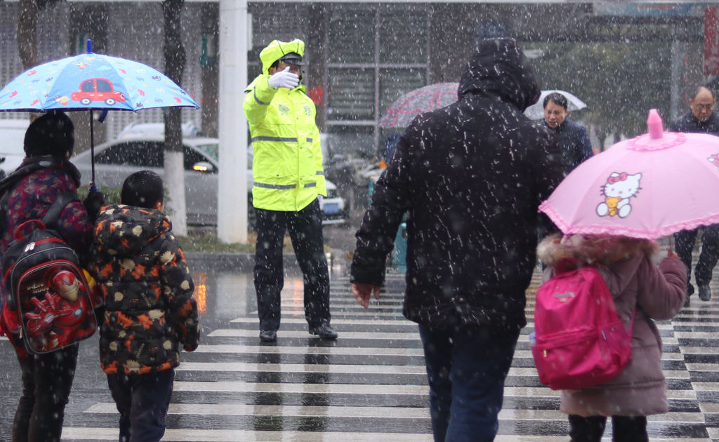 受到北方冷空气影响,今天早晨(1月9日)7点多钟开始,江苏句容城区迎来2020年的首场降雪,为了保障雨雪天气出行安全,句容交警部门启动了应急预案,近百名“护学岗”交警提前上路,疏导交通,风雪中守护学生安全。