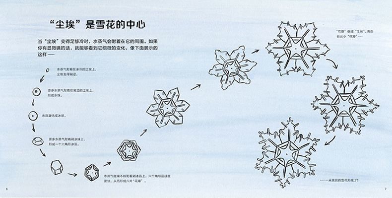 对了,还有冰晶核,这也很关键,如果高空的空气冷暖不定或是气流太不稳定,就没有足够的冰晶核——水汽也就无法附着展开成一朵朵小雪花。