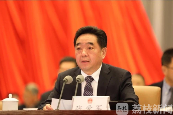 ▲宿迁市市委书记、市人大常委会主任张爱军主持大会
