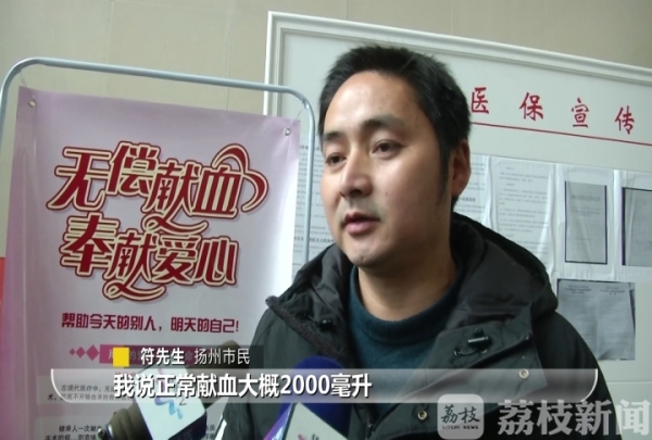 扬州市中心血站方面介绍:无偿献血超800毫升,志愿者可终生免费用血,亲属可等量用血。但过去报销用血需携多种材料到中心血站办理,手续繁琐。今年起,江苏省医院用血直报联网管理平台上线,无偿献血者用血可在医疗单位直接报销,符先生成为扬州市首个新政策受益者。