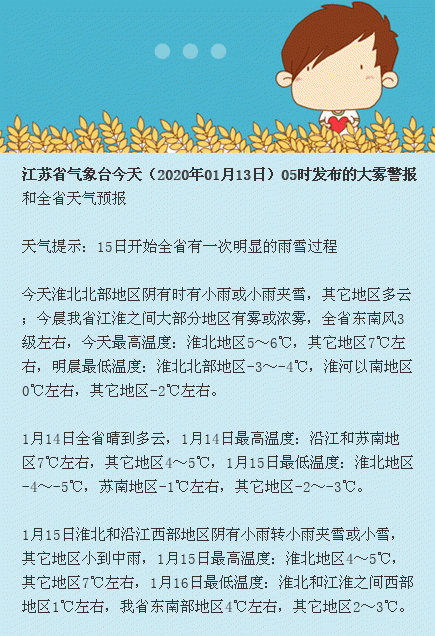 1月13号江苏全省各地具体的天气情况