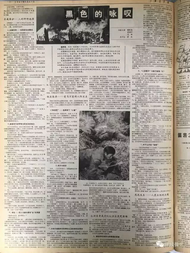 1987年6月27日《中国青年报》刊登《黑色的咏叹》。
