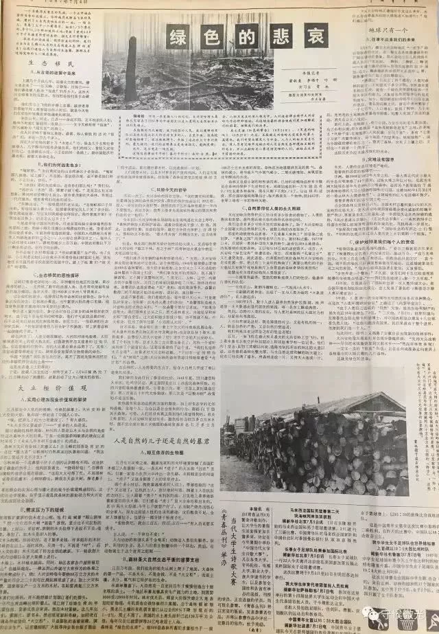 1987年7月4日《中国青年报》刊登《绿色的悲哀》。