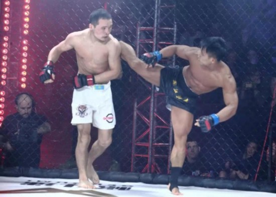 伊布格勒的比赛较为遗憾,作为精武门金腰带得主,伊布格勒是以摔跤见长的蒙古汉子。他的对手则是泰拳和踢拳双料冠军,本土作战的俄罗斯拳手卡扎瓦-苏雷曼诺夫。比赛中伊布格勒的抱架较为低,主要是靠步伐和游走来躲闪对手的进攻,结果马上就为此付出了代价,卡扎瓦一记前摆肘打空后,原地衔接了一个转身肘,直接将伊布格勒KO。
