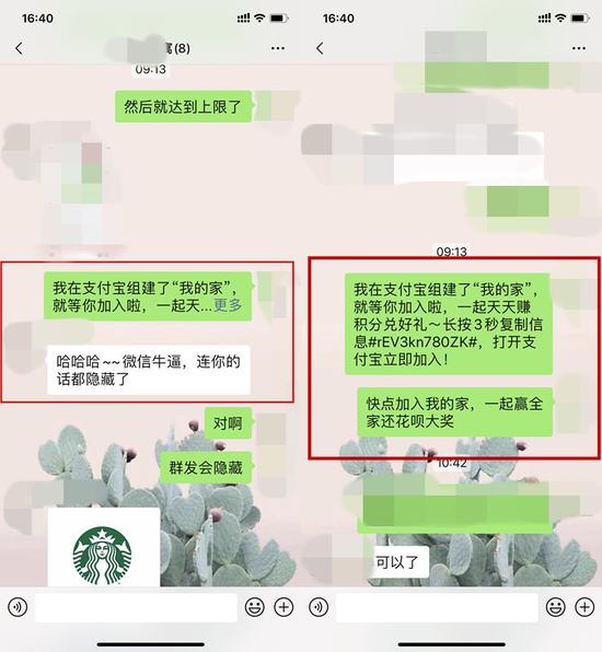 另外,在从今日早上开始,在好友对话框内发送邀请好友一起组建“我的家”的请求时,能够全部展示,但如果在微信群里发送相同信息,该消息则会被折叠。