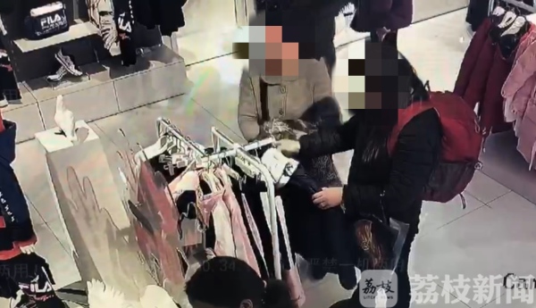 接警后,淮海路派出所民警连忙出警赶到了现场,并调取了监控进行查看,这才发现当天有两名女子一直在店里看着这款衣服,行为很是可疑。据店员小周介绍,当天商场里有新年优惠活动,人流量很大,不少顾客都在店里选购,当时也没有发现异常。而这两名女子正是趁着人多大家忙碌的时刻,将架子上的羽绒服包在自己的衣服内给带走了。