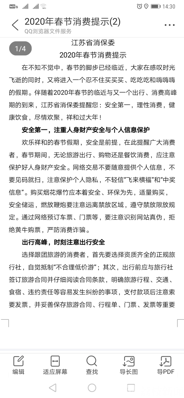 2020年春节临近,购物、餐饮、旅游、娱乐等领域又将迎来一个消费高峰。为了减少消费纠纷,让全省广大消费者过一个欢乐、祥和的传统佳节,1月13日,江苏省消保委结合近年来春节期间咨询投诉情况,特别是2019年维权诉求数据解读报告中的热点、典型问题,发布了2020年春节消费提示。