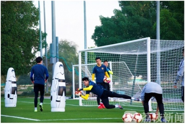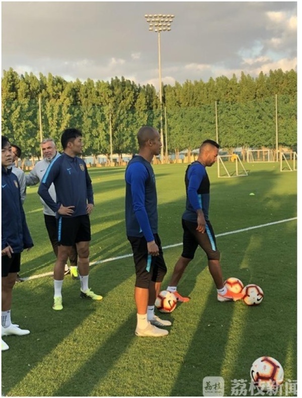 训练最后的大约半小时,苏宁队安排了10打10全场训练,奥拉罗尤带领两名助理教练也在球场内,他多次打断比赛的进程,耐心地给球员们讲解战术。值得一提的是,不久前落选国奥队的黄紫昌在北京时间12日晚上从上海起飞,当地时间13号凌晨5点抵达迪拜。在经过上午短暂的休整之后,小黄人下午就参加了球队的训练。