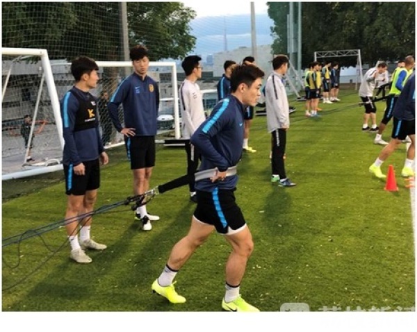 上午球队以热身为主,进行了几组简单的恢复训练后,奥拉罗尤安排球队进行了类似“老鹰捉小鸡”的游戏,两名球员手拉手去“抓”身边的球员,这样的项目可以锻炼球队的默契程度。当地时间14日下午,江苏苏宁将与乌兹别克斯坦劲旅塔什干火车头的热身赛,所以当天下午,球队针对这场比赛进行了战术演练。