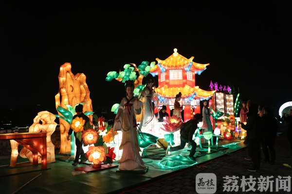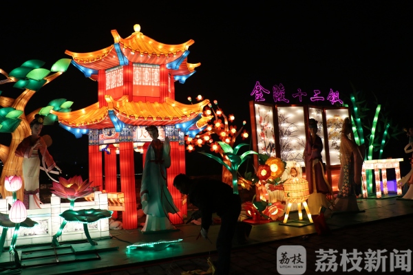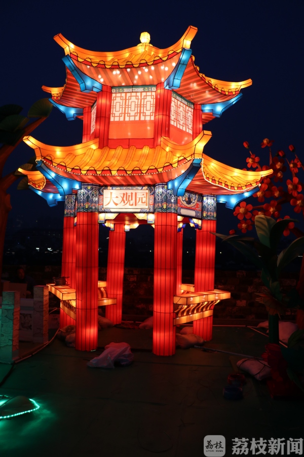 而城墙灯会的灯组今天也进行了试亮灯,今年的城墙灯会将传统文化与数字互动完美结合,突破了传统手扎灯组的范畴,彰显了古都新时代的新风貌。听曲猜名的“戏曲魅影”、吐露缤纷泡泡的“梦幻泡泡树”等趣味灯组用现代声光电技术玩转光影,展现出绚丽独特的灯彩艺术盛宴。以金陵十二钗为灵感的“梦回金陵春”、以金陵折扇作为元素的“毓秀古都”等文化灯组,让你古风穿越一睹盛世风采!