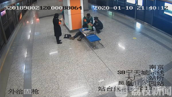 南京地铁分局大厂东站派出所民警姚正亮表示:因为天冷地上比较凉,把他先扶到座椅上,此时发现他的嘴角有血迹,鼻子也流血,迅速打了120。