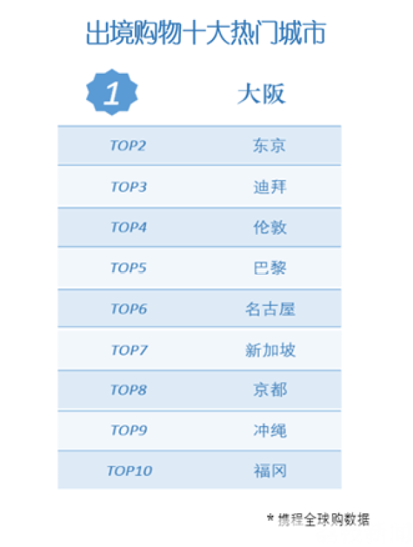 从消费规模看,2019年最受中国游客青睐的TOP10国外购物城市排行榜分别为:大阪、东京、迪拜、伦敦、巴黎、名古屋、新加坡、京都、冲绳、福冈。其中6个是日本城市,大阪、东京排名前两名,成为国人出境购物的首选目的地。