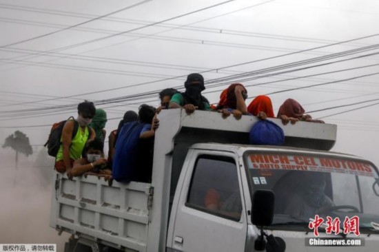 当地时间1月13日,菲律宾八打雁省,在塔阿尔火山附近居住的民众正紧急撤离。