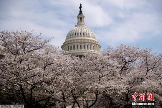 资料图:美国华盛顿,潮汐湖两岸樱花盛开。