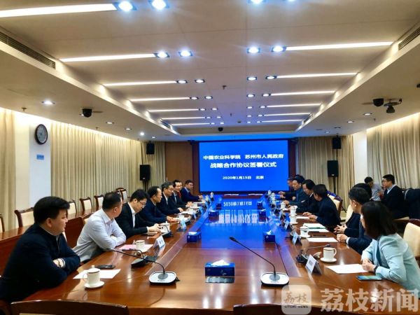 今天(1月15日)上午,中国农业科学院和苏州市人民政府在北京签订全面战略合作协议,此举将集聚中国农业科学院的科技优势和苏州的资源优势,充分发挥苏州作为东部沿海发达地区的引领作用,共同推进苏州农业全面升级、农村全面进步、农民全面发展和城乡融合走在前列。