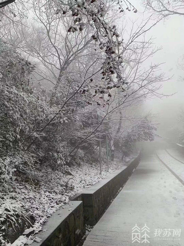 下雪啦!昨天(15日)下午16点,南京中山陵景区最高点头陀岭下起了大雪。