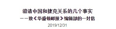 针对贺瑞普的挑衅,中国驻捷克大使馆于2019年12月31日发表致《华盛顿邮报》编辑部的信,对贺瑞普的种种“反华”言论一一回击。