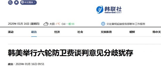 韩美第10份防卫费分担特别协定已于去年年底到期,为签署新协定,双方已举行6轮谈判。其间,美方一再要求韩国承担更多分担额,包括承担美军资产出动半岛等现有SMA没有明文规定内容。据悉,双方第七次谈判日程将通过外交渠道协商敲定。