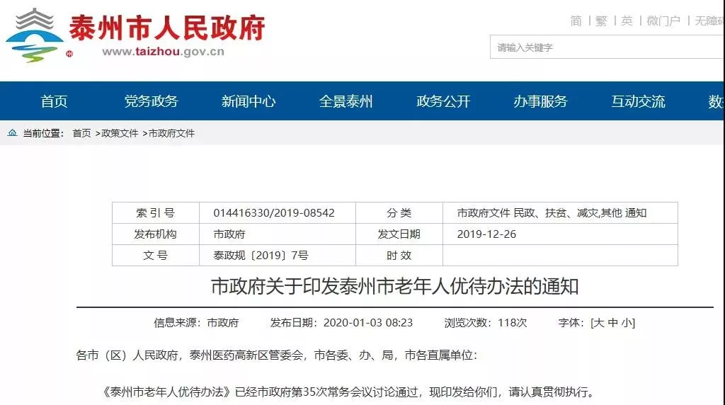 老吾老以及人之老,好消息来了,《泰州市老年人优待办法》(以下简称《办法》)下月施行,干货满满!!!