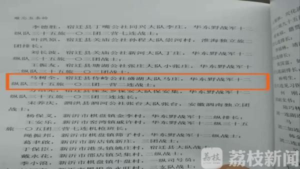 经过记者多方寻找,终于在侍岭镇岭南社区查找到了烈士马树全的一些信息。根据五条岭烈士陵园提供的消息,马树全烈士的籍贯在原宿迁县侍岭镇盛湖大队马庄。而侍岭镇盛湖村已经变更为侍岭镇岭南社区,马树全烈士的亲属很可能就在岭南社区马庄组。在当地社区的帮助下,记者和社区工作人员挨家挨户了解,得知烈士马树金(全)是马贤文的三爷。