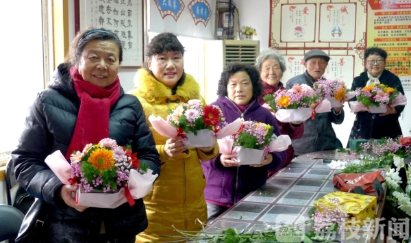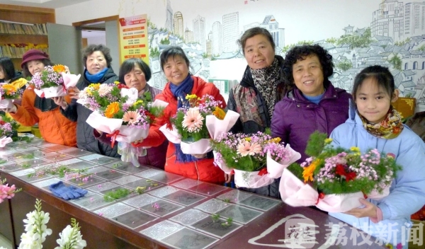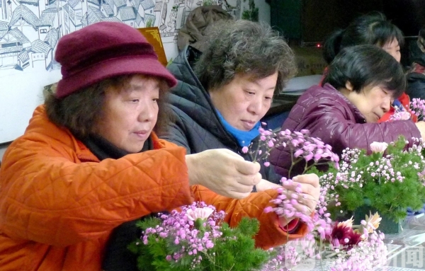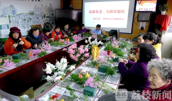 1月15日上午9:30,朝天宫街道绒庄新村社区活动室一场插花培训即将开始,在南京润恬社会工作服务中心的插花艺术老师的指导下,该社区“快乐驿站”的20位老人饶有兴趣地插好了一束束漂亮的鲜花。