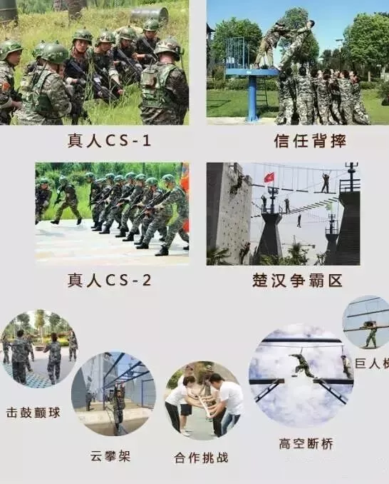 活动内容:推出“我是小小特种兵”体验式冬令营、真人cs大战、高空索道、九曲迷魂阵、智勇大冲关等各类户外活动。