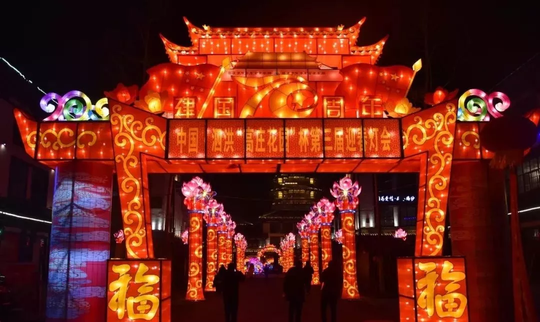 活动内容:将中国元素和泗洪本地特色相结合,为市民游客提供一场绚丽多彩的灯光美景。每天17:00—22:00,免费供游客欣赏。