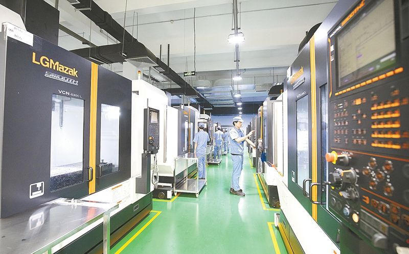东台以科技创新为引擎,以智能化改造为重点,大力实施“百家星级企业”“百家智能企业”“百家企业技改”推进计划,企业转型显著加快,120个技改项目单体规模超1600万元、创历史最好水平,智能加工中心达1.6万台,工业机器人总数超500台,新建省级企业研发平台8家,国家高新技术企业总数达162家,创成五星企业4家、四星企业2家。入选首届中国创新百强县,连续5年跻身全国工业百强县(市)。从捷士通科技5G散热器及射频器件批量供货爱立信、诺基亚、艾默生等行业龙头客户,到创励安推出自动化生产线智能设备;从富乐德大功率电力半导体模块技术领先同行,到贺鸿电子定向研发投产5G电路板……越来越多的企业迈入5G应用“家族”。智能加工中心是不少企业智能化生产的标志性设备。如今,东台拥有了自己的专业生产企业。落户梁垛镇的昊雄智能数控装备项目拥有日本FANUC和三菱系统授权的软件控制系统集成专利,生产立式加工中心、卧式加工中心、龙门加工中心、数控车床四大系列28类产品,广泛应用于通讯、精密模具、航空航天、新能源汽车产业等领域,已为东台多家企业提供整机及维护服务,形成上下游产业链、供应链体系,目前又瞄准5G市场新动向,向智能装备全制程进军。